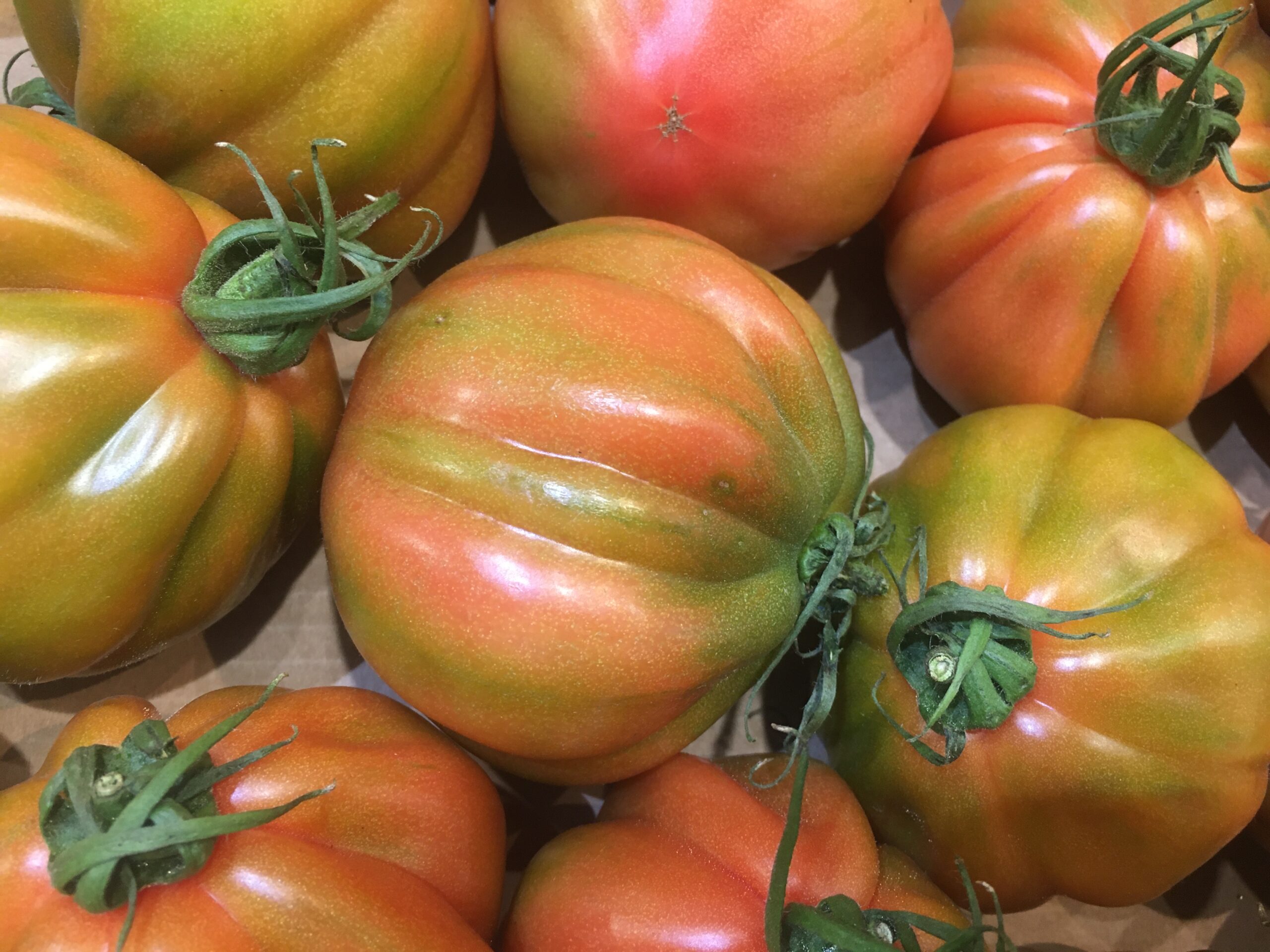 Pomodori cuore di bue, dal gusto dolce e morbido con buccia sottile.
